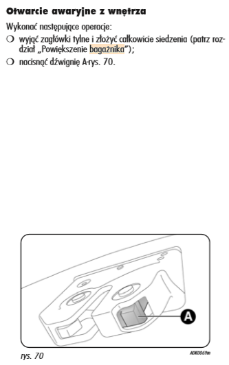 Hej, jak w temacie, dzisiaj rano próbuje otworzyć klapę bagażnika i brak reakcji, jest możliwość awaryjnego otworzenia klapy?