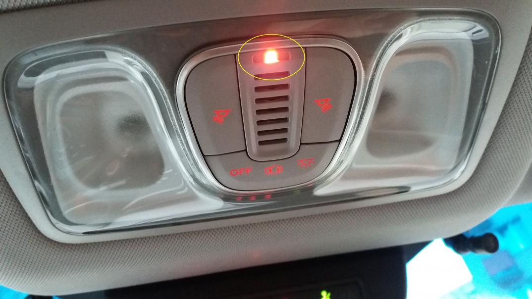 Czasami pali mi się czerwona dioda w przednim panelu oświetlenia kabiny. Co ona sygnalizuje?Załącznik 266808