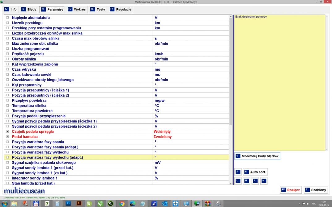 Podłaczyłem do multiecuscana i wyszły takie wyniki: