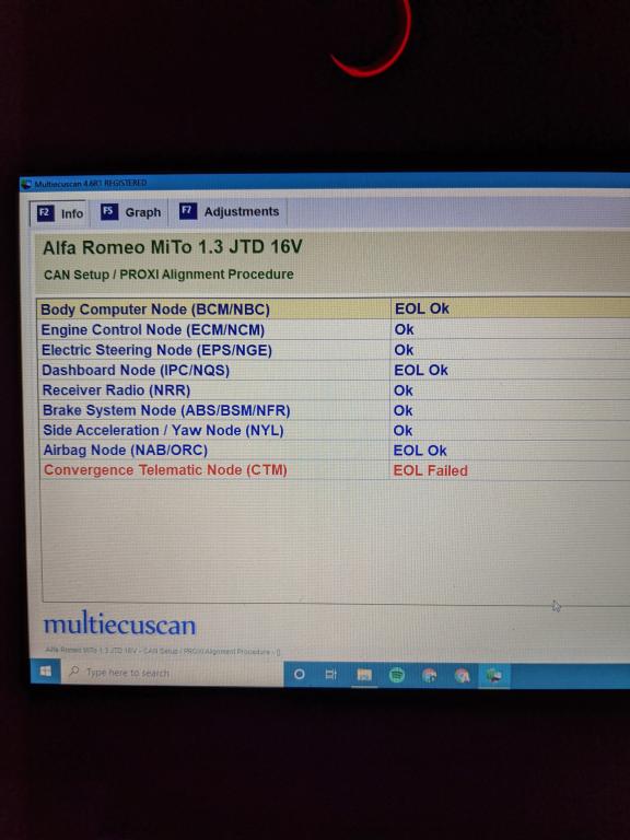 Używając oprogramowania Multiecuscan 4.61 i odpowiedniego kabla udało mi się wejść w ‘PROXI Alignment’, jednak sam proceder nie skończył się sukcesem.