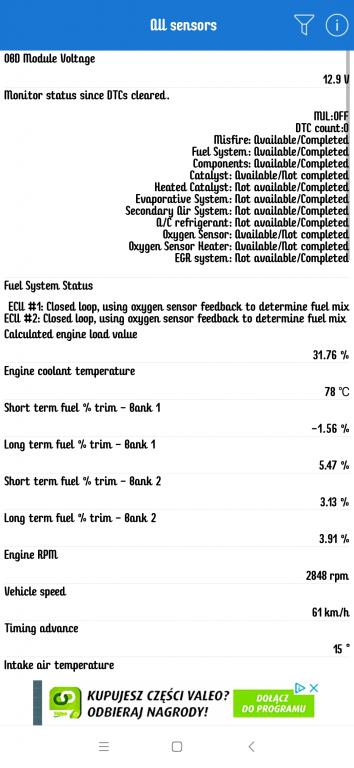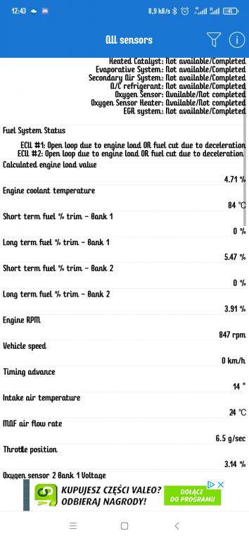 Błędy jakie wyskakują to p0302 i p1151. Dodatkowo zauważyłem coś takiego w programie car scaner (screen) Chodzi mi o fuel system status. jak jest zimny to piszę. (tłum z ang) obiek otwarty ze względu na niewystarczającą temperaturę silnika. jak osiągnie 90 (podczas jazdy oscyluje do 88C i żadko kiedy przeskoczy 90) to jest takie coś