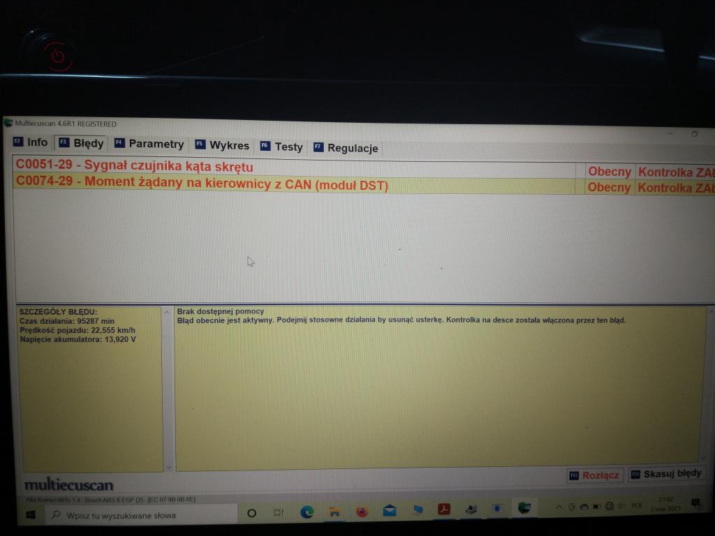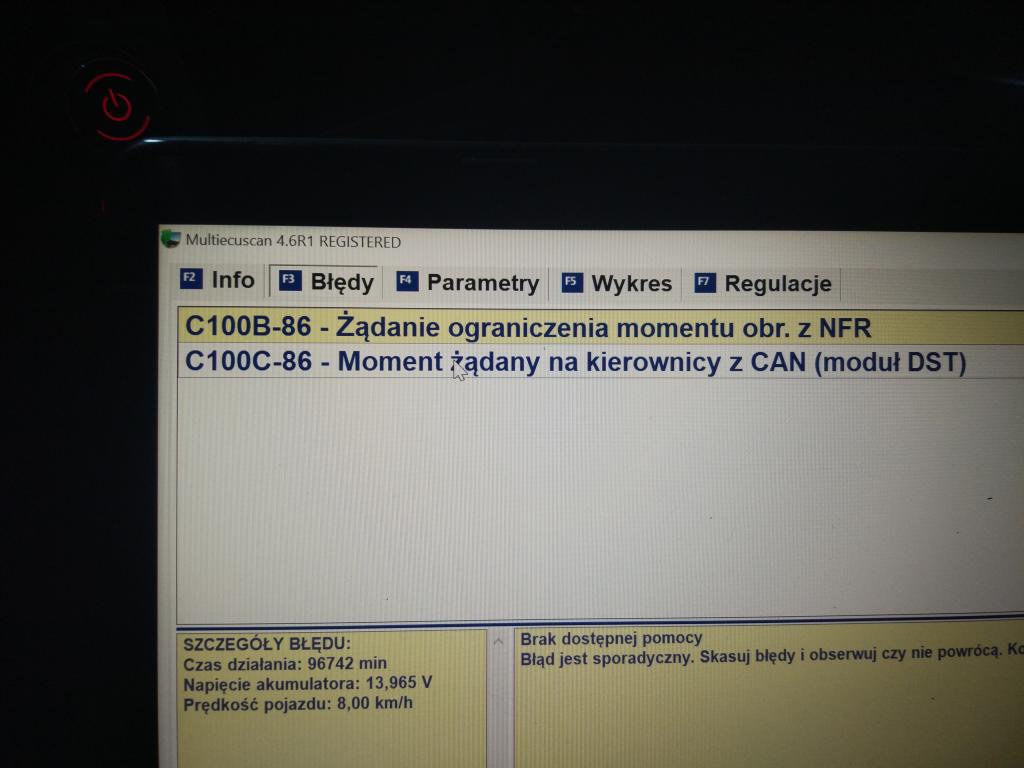 Na desce i w kompie wyświetlał się błąd wspomagania po wymianie czujnika problem ze wspomaganiem wygasł pozostały kolejne