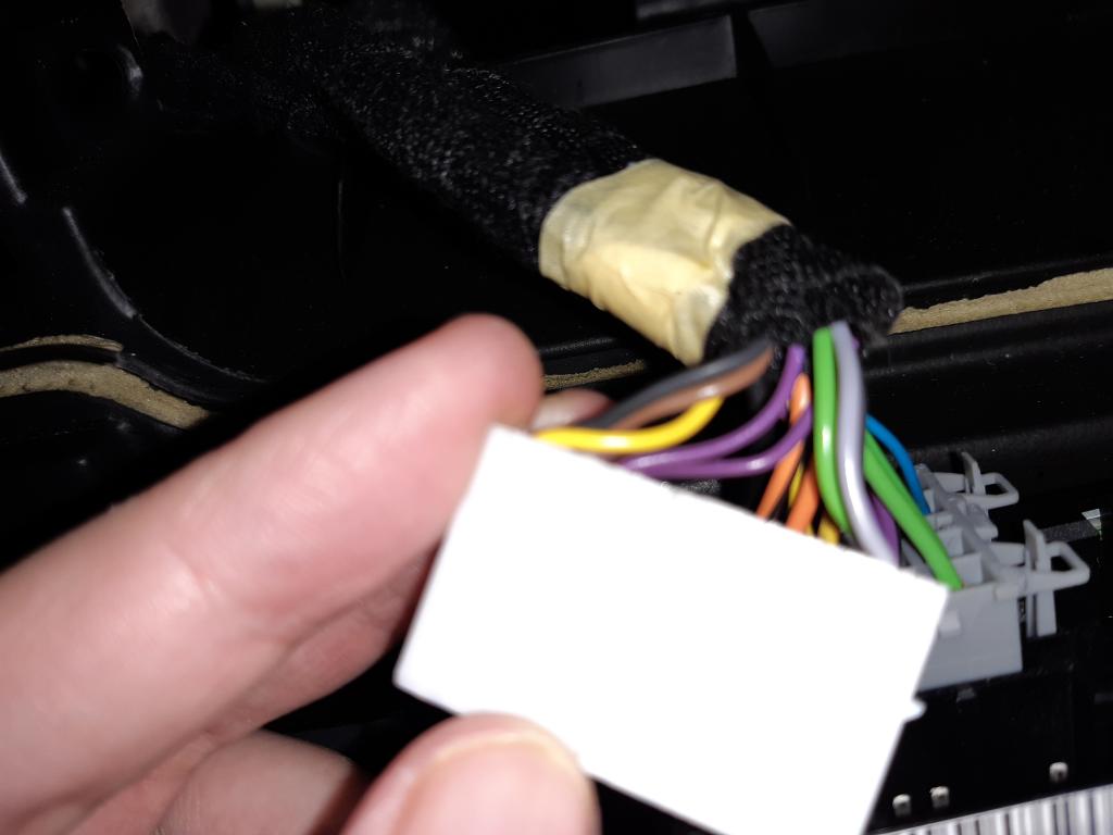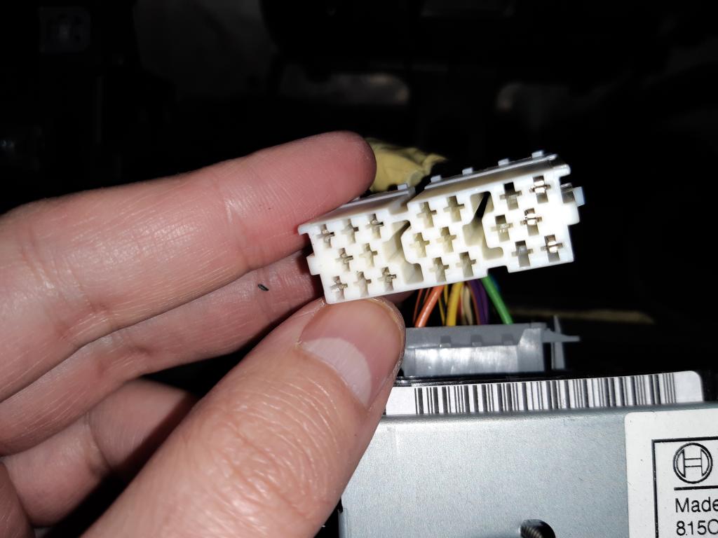 A poniżej zdjęcie mojego radia i wtyczki. Z lewej strony zamiast tych 5 kabelków podpiąłem to urządzenie. Schemat na radiu jest odwrócony, wiec te piny są po prawej.