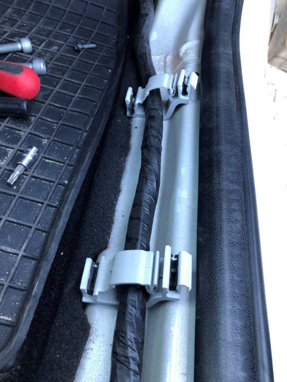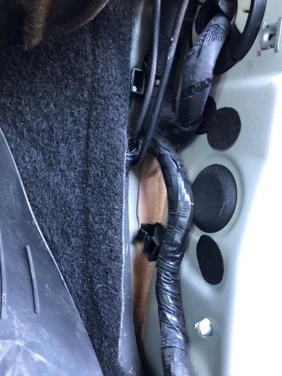 Wróciłem do tematu bo brak radia zaczął mi już przeszkadzać. Z wątku o montażu radia alpine dowiedziałem się, że kabel antenowy z dachu wchodzi w tylny słupek od strony pasażera i potem biegnie w osłonie progu. Zdemontowałem osłony progu i zaczynam podejrzewać, że u mnie ten kabel jest całkowicie zdemontowany. Czy w którymś z tych dwóch wolnych miejsc zaznaczonych na czerwono powinien być wtyk i gniazdo do idącego w progu kabla antenowego? Wrzucam też zdjęcie oplotu idącego w progu, wiecie może czy antenowy powinien iść oddzielnie równolegle, czy jest w tym oplocie?