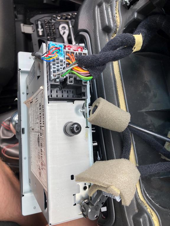 Zaskoczyło mnie za to znalezienie dwóch dodatkowych, niepodłączonych do niczego wtyczek. Wyglądają na zamontowane tam oryginalnie, rok produkcji na nich pokrywa się z rokiem produkcji samochodu. Czy wiecie może, co to jest? Dorzucam też zdjęcie tyłu mojego radia, w którym ewidentnie brakuje miejsca na te dodatkowe przewody