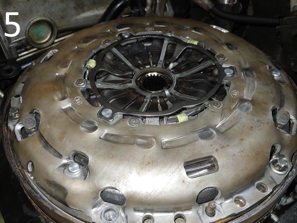 LUK o numerze 624340333 jako komplet. W końcu przyszedł czas wymiany i tu zaskoczenie gdyż oryginalne koło o numerze 55214811 (zdjęcie 6) jest wyższe od nowo zakupionego (po pomiarze okazało się iż w miejscu gdzie prauje tarcza sprzegłowa wysokość nowego koła jest mniejsza o 3mm (stare ma 10mm nowe 7).Tu konsternacja NIE DA SIĘ TEGO POSKŁADAĆ tzn Koło dało się przykręcić do wału bez problemu natomiast gdy zakładam tarczę jest wszystko OK (średnica tarczy się zgadza pasuje do koła) ale gdy zakładam docisk (używam narzędzia do sprzęgieł sac) sprężyna docisku zostaje w środku [zdjęcie nr 5](nie podnoszą się listki sprężyny) Już nawet w akcie desperacji kupiłem sprzegło marki Sachs (po otwarciu pudełka w środku był LUK) Gdy zakładam to samo sprzęgło na stare koło DM wszystko jest OK