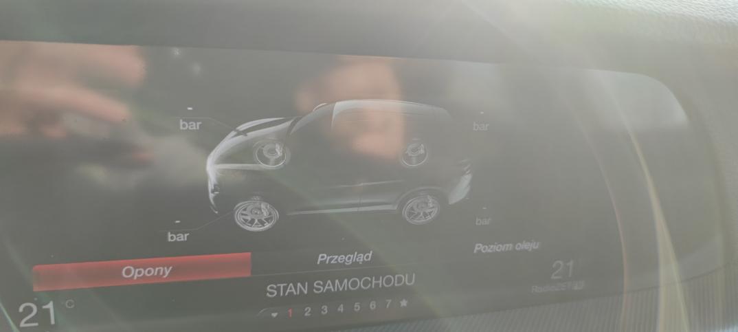 W momencie kiedy na licznikach kontrolka pokazuje błąd, w stanie samochodu nie jest pokazywane ciśnie w żadnym kole.