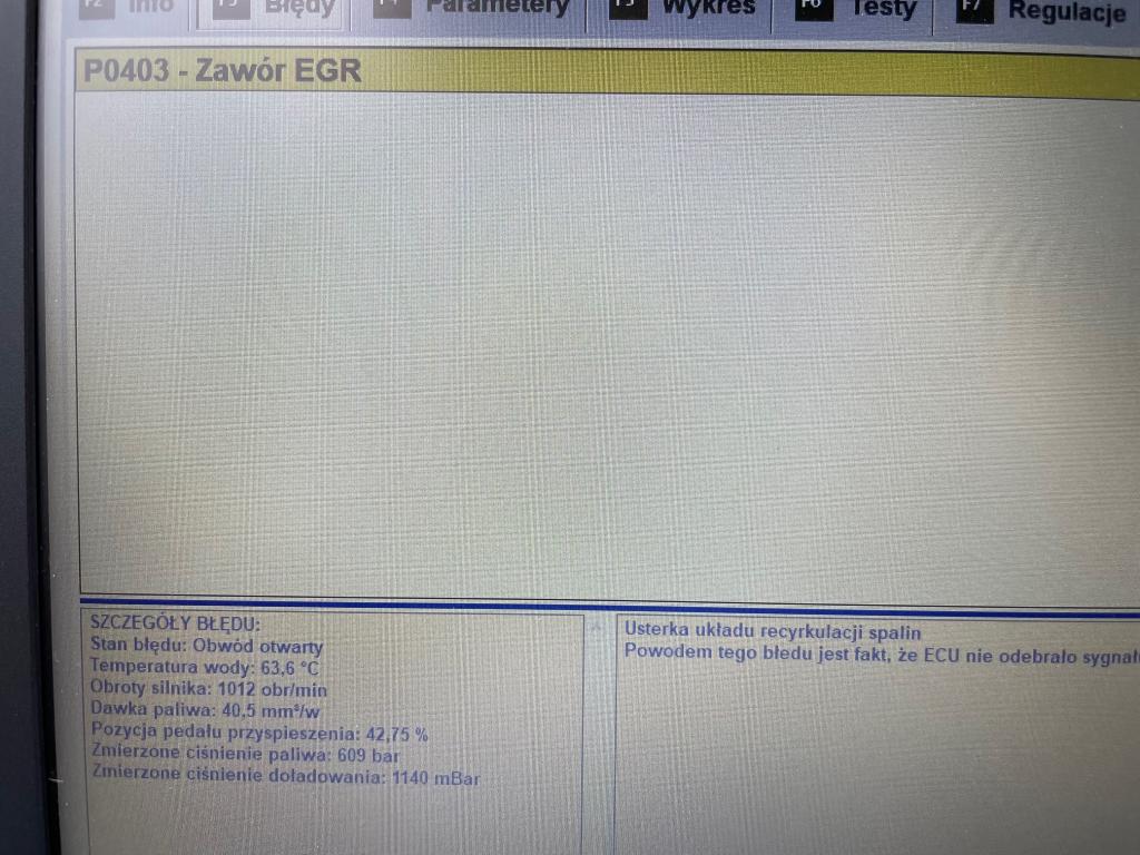 Szczegóły błędu: "Usterka układu recyrkulacji spalin. Powodem tego błędu jest fakt, że ECU nie odebrało sygnału.."