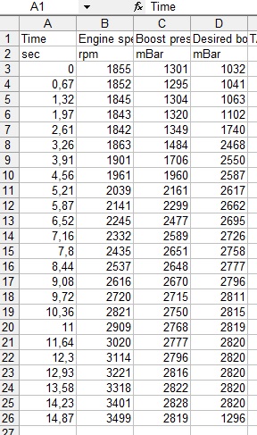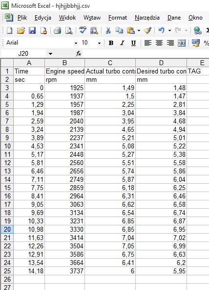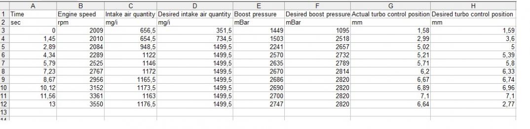Ciśnienie doładowania jakoś nie nadąża za zadanym, tak samo jak pozycja gruszki.