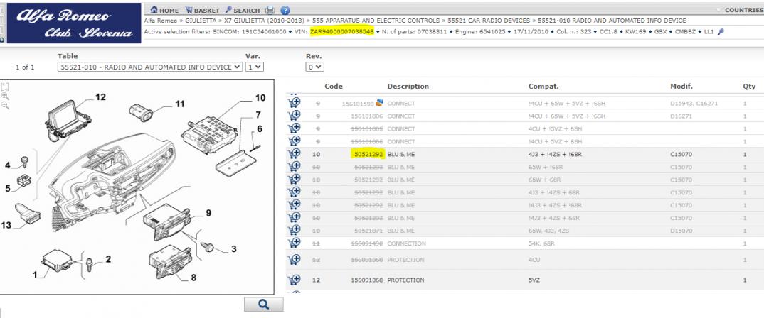 Witam.Czy jest ktoś w stanie ustalić jaki moduł blue&me powinien być w Alfa Romeo Giuluetta chodzi o numery ZAR94000007038548
