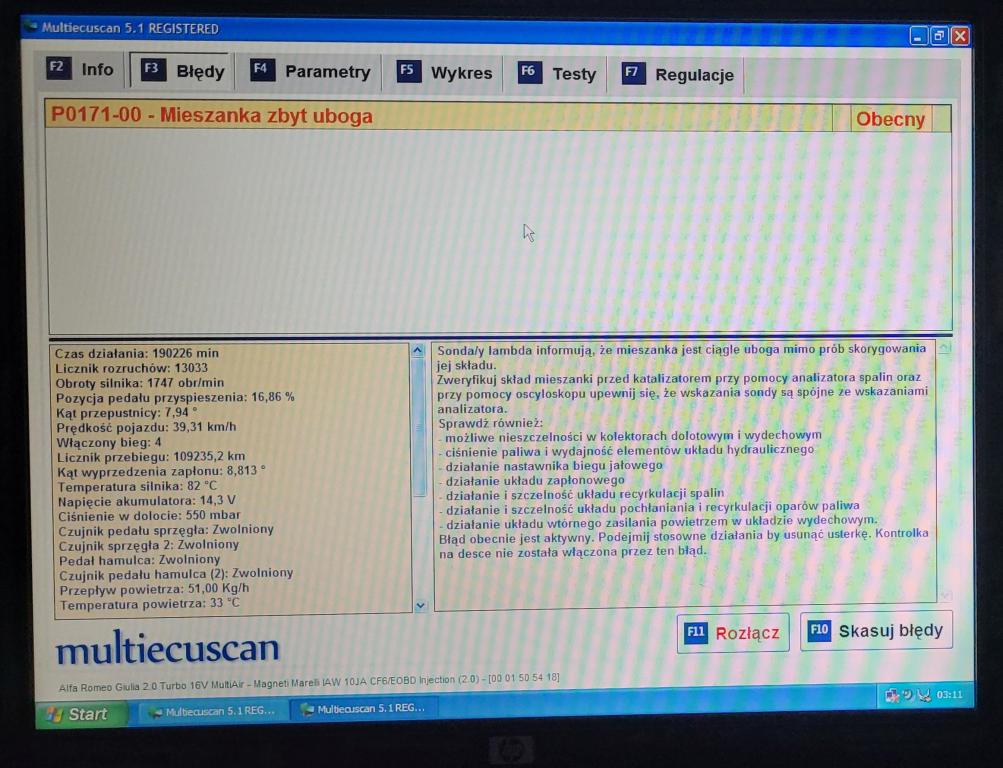 Błąd skasowany, po jeździe próbnej nie wrócił...
