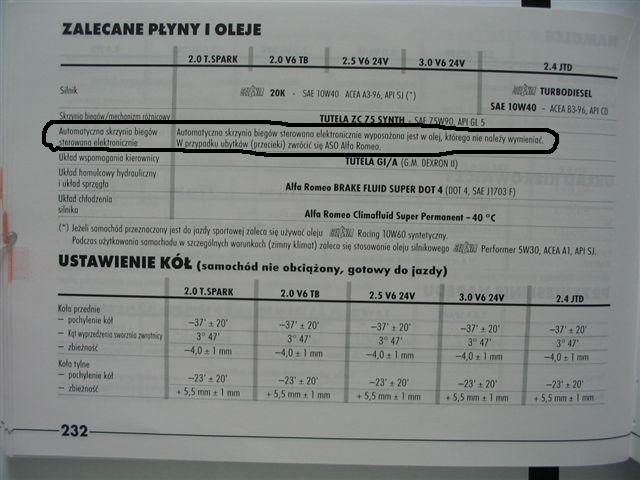 Niby Alfa Romeo nie zaleca wymiany oleju a raczej uzupełnianie/dolewanie, natomiast producenci skrzyń zalecają wymianę