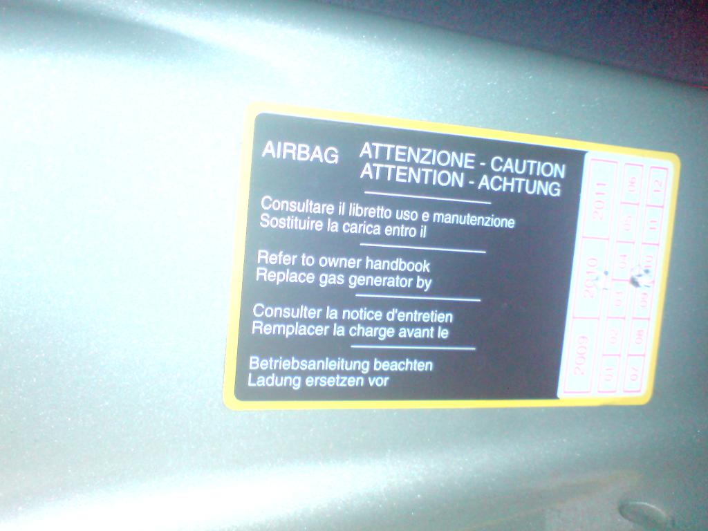 Naklejka informuje o zalecanej dacie wymiany generatora gazu kurtyny ! :)