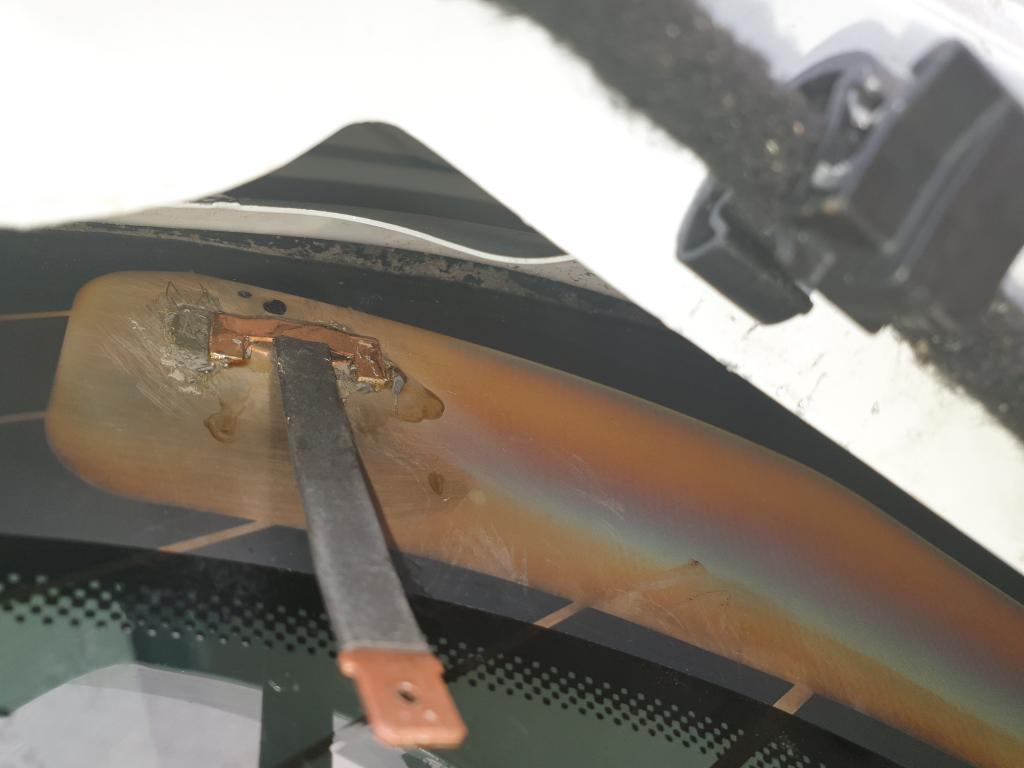 Zauważyłem, że końcówka blaszki nie dotyka metalowego elementu (chyba to miało być uziemione). Jednak tak niefortunnie pociągnąłem, że oderwałem od szyby.