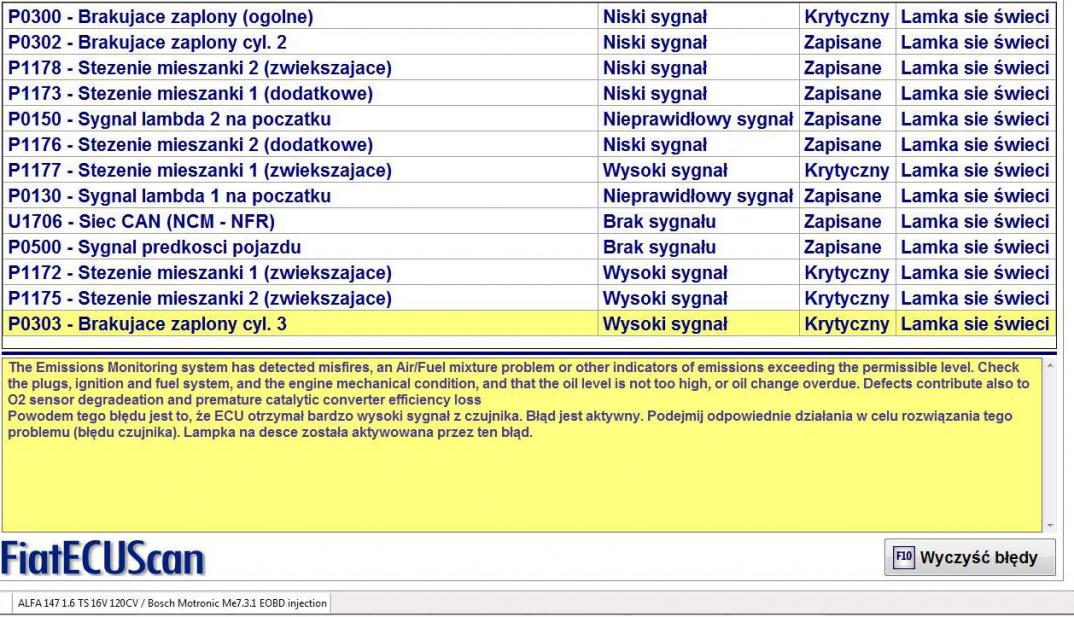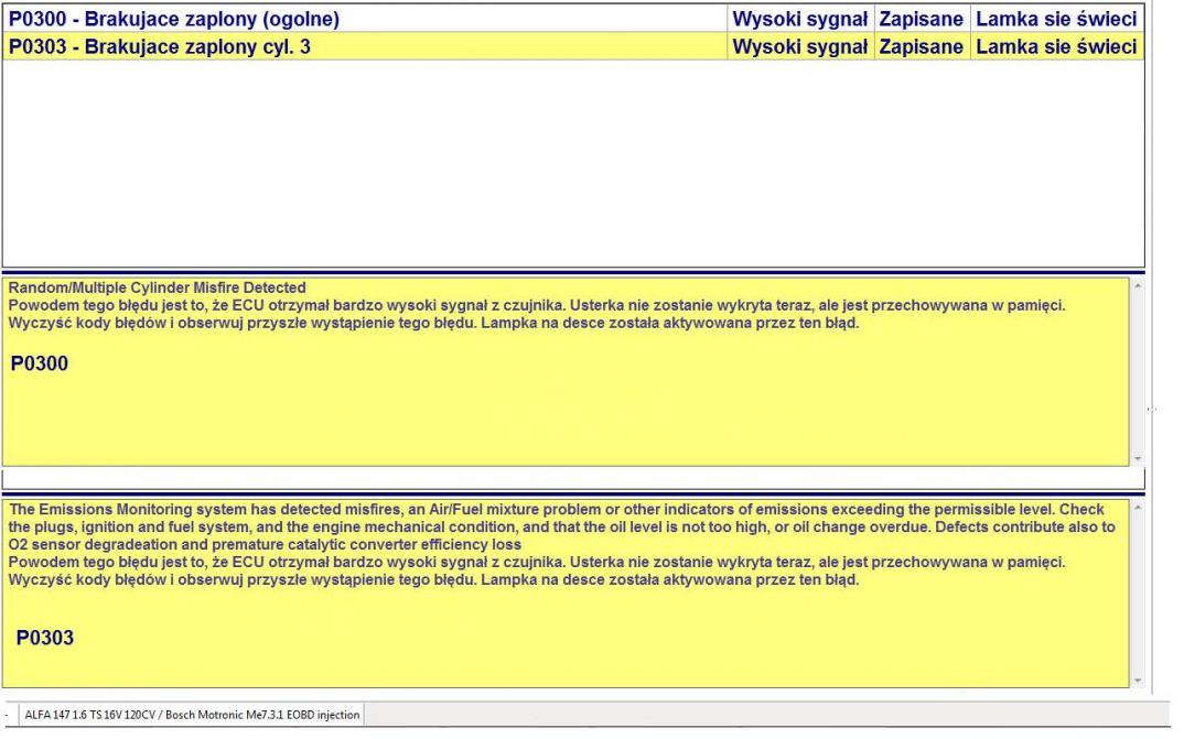 Sytuacja wyglądała następująco. W czasie jazdy z Łodzi do Szczecina zatankowałem gaz w Granowie i po przejechaniu około 150km na S3 przy prędkości przez dłuższy czas utrzymującej się w okolicach 120km/h pojawił się błąd silnika, samochód zaczął tracić moc i szarpać. Podłączyłem pod komputer i odczytałem błędy.