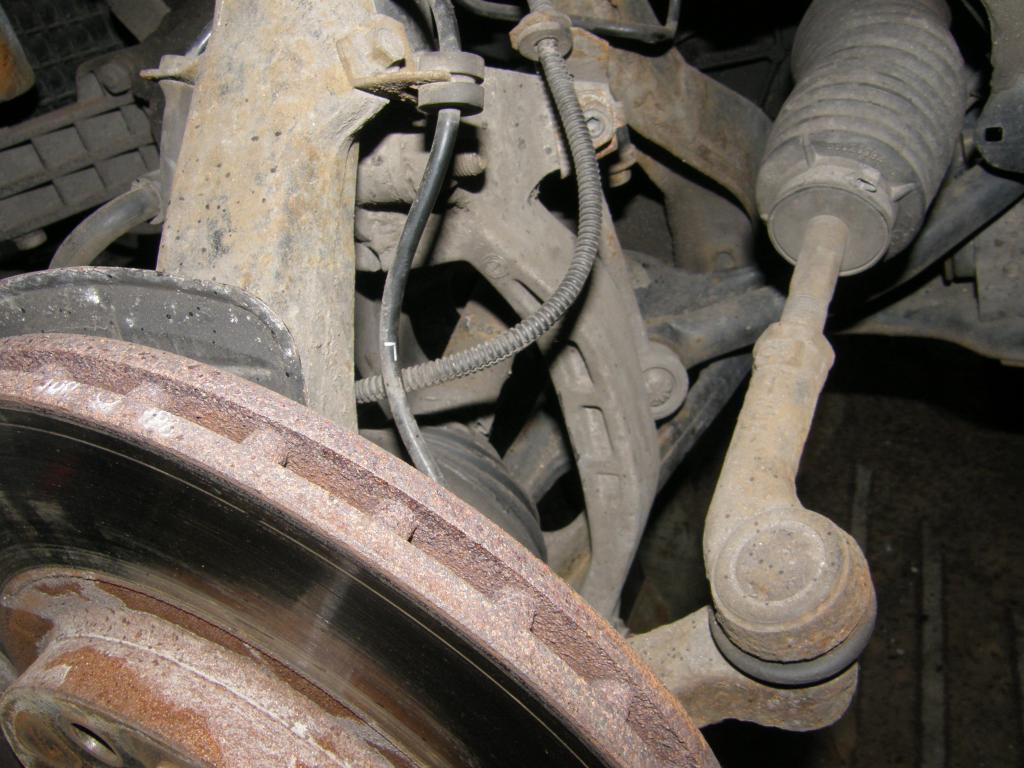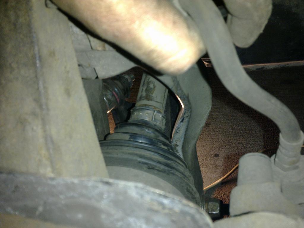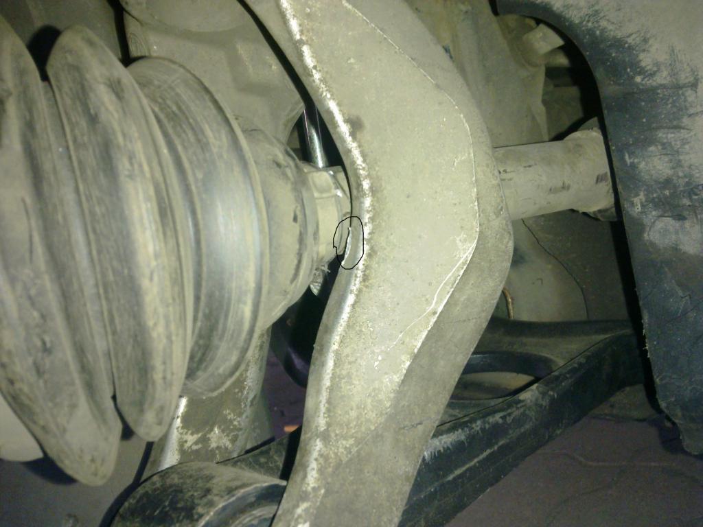 Po całej robocie przy maksymalnym skręcie w którą kolwiek stronę, słyszałem ocieranie. Okazało się że metalowa opaska trzymająca przegub ociera o widełki amortyzatora: