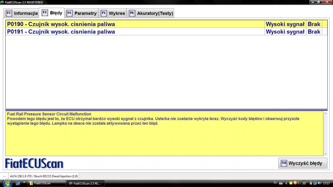 po190 jest to czujnik na listwie wtryskowej(ten czyscilem i nie pomoglo musialem wymienic ) a p0191 to regulator ciśnienia paliwa na pompie wtryskowej cr (ten wystarczy wyczyscic, ale ciężko go wykrecic),jeszcze takie proste pytanie wymieniles filtr paliwa???