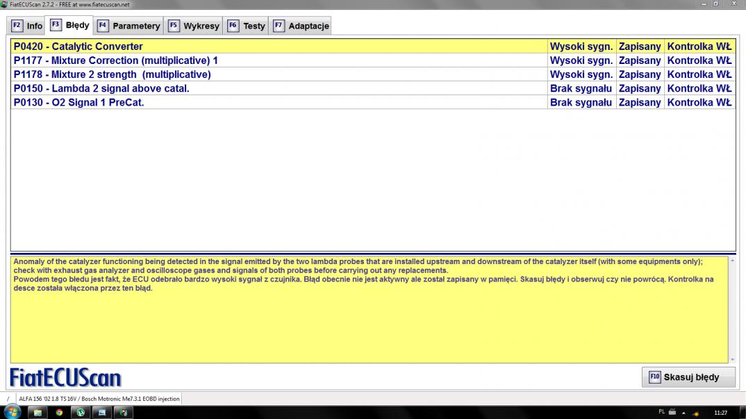 Witam. Mam problem z alfa mianowicie taki po przejechaniu 300-400 wyskakują błędy i silnik telepie i jest zamulony po przekroczeniu 3tys obrotów chodzi normalnie. Po skasowaniu błędów wszystko wraca do normy. W aucie zamontowany jest lpg.
