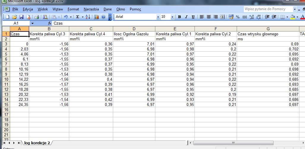 log korekcji dawek a spalanie. Wtryski ??