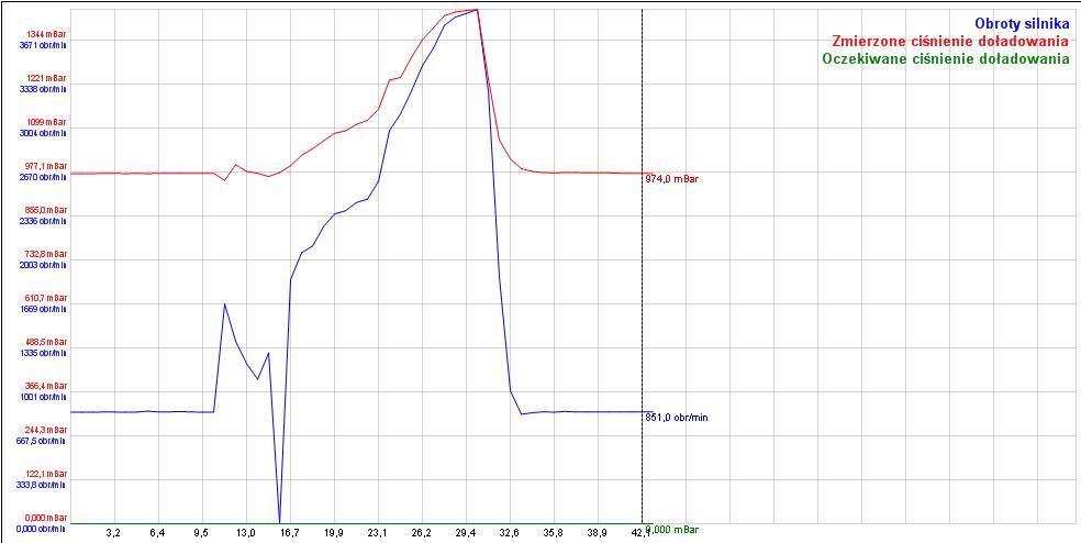 Dodatkowo martwi mnie wykres ciśnienia doładowania - oczekiwane ciśnienie doładowania jest zawsze zero a zmierzone ciśnienie doładowana doszło do 1400mBar przy 3700 obrotów - czy to może być kwestia, że auto stało na luzie?