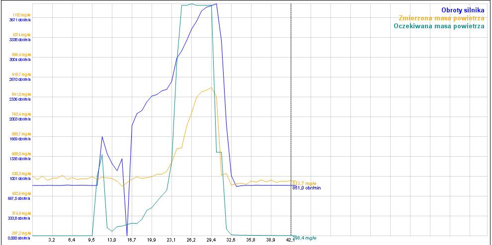 Dodatkowo zmieniłem przepływkę, bo zmierzona masa powietrza i oczekiwana masa powietrza bardzo się różniły. Niestety niewiele to pomogło i dalej oczekiwana i zmierzona masa są bardzo rozjechane... Czy to normalne?