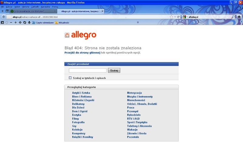 Typowy efekt użycia wyszukiwarki Allegro zgodnie ze schematem : wahacz 156, sortuj w/g ceny.