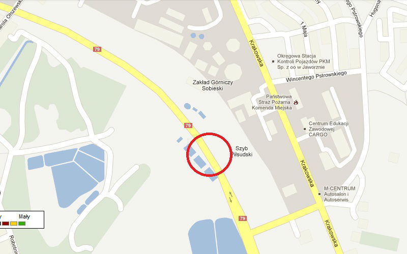 W sobotę 23.06.2012r, koło godz. 11:00 na obwodnicy Jaworzna (ul. Krakowska), na wysokości szybu "Piłsudski", kierowca zielonego Nissana Micry, by uniknąć zderzenia czołowego (z przeciwka pojazd wyprzedzał na trzeciego), uciekł na pobocze uszkadzając ww pojazd o latarnię uliczną.