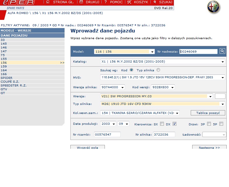 Chciałbym prosić o sprawdzenie VIN Dla Alfy 156SW 1,9 jtd z 2003 roku: