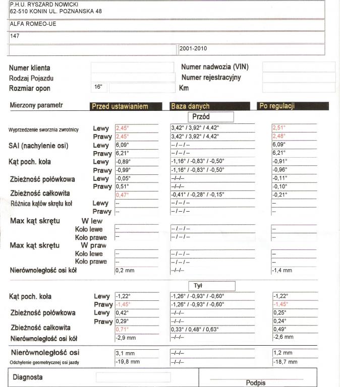 Po wymianie prawie całej zawiechy zostawiłem dziś u Nowickiego w Koninie auto celem zrobienia geometrii zawieszenia.