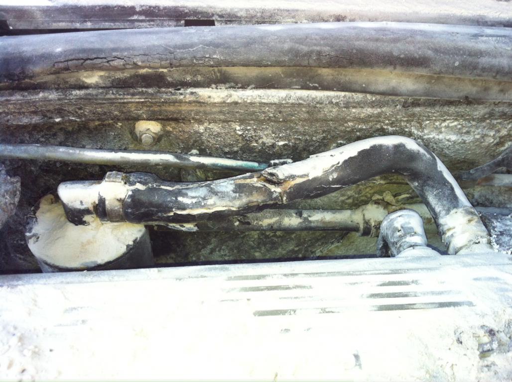 Silnik się okopcił ( a raczej zaśnieżył pianą) i widać pęknięty przewód paliwowy od filtra do silnika - choć to mogło być wynikiem płomieni.