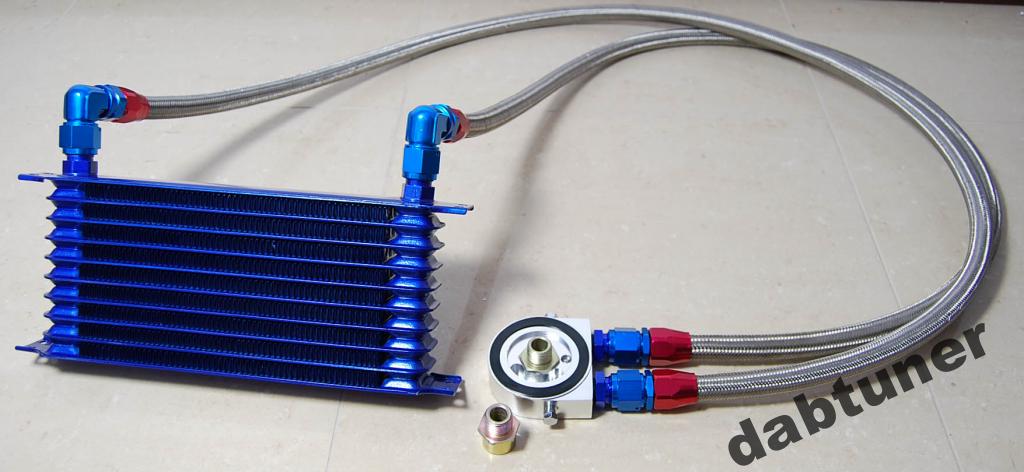 Kup podstawkę Mocal z termostatem (ważne, bo innaczej przy normalej jeździe w zimę olej nigdy nie osiągnie temp. roboczej). Dopiero do tego przykręcasz chłodniczkę.