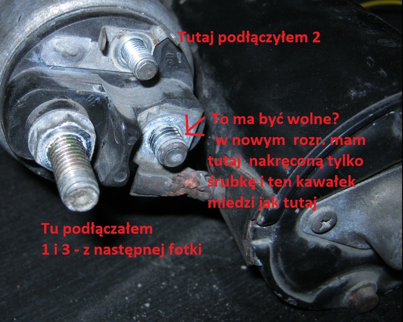 Ostatnimi czasy pojawił się u mnie problem z rozrusznikiem. Raz kręcił, raz nie. Jak już auto odpaliło rozrusznik przez chwilę pracował i było słychać chrupotnie :) W końcu przyszedł czas, w którym rozrusznik odmówił posłuszeństwa. Kupiłem używkę na allegro ale pojawił się problem. Nie pamiętam jak były połączone przewody :) Będę wdzięczny za pomoc.