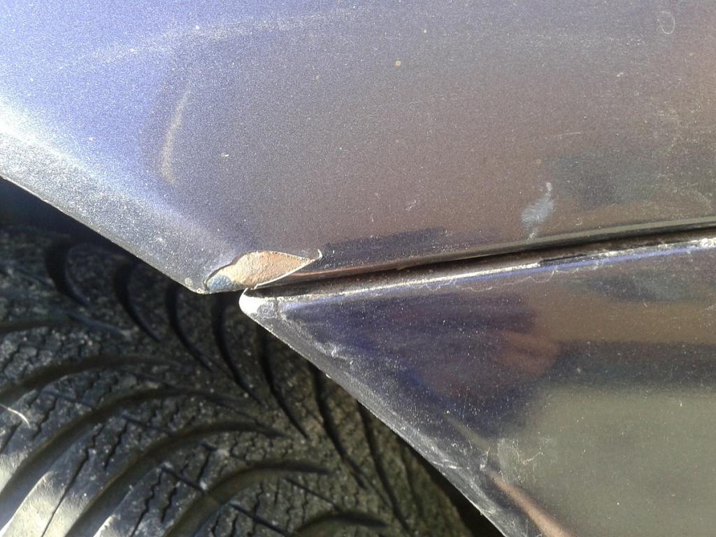 niestety, nawet nie wiem czym alfa dostała strzał w błotnik, efekt najpierw lakier popękał wczoraj zszedł, wygląda fatalnie.