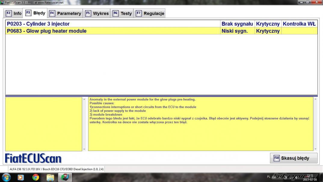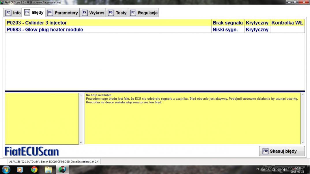 Pierwszy błąd wskazuje na wtrysk 3 cylindra.