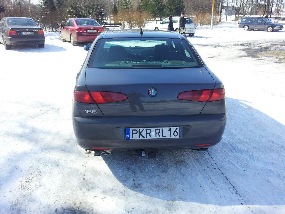 Witam. Mam do sprzedania Alfe Romeo 166, z silnikiem 2,4JTD i manualna skrzynia biegow(czarne skory). Auto jest z roku 2004 czyli wersja po lifcie. Jest po wymianie oleju silnikowe, oleju w skrzyni, kompletu filtrów, paska rozrzadu+pompa wody, musiałem tez wymienic sprzegło na nowe gdyz stare odmowiło posługi(na sprzegło mam jeszcze gwarancje), i czujnik cisnienia paliwa czy cos takiego nie pamietam dokladnie. Na wszystkie wymiany mam dokumenty potwieradzajace. Posiadam dwa komplety opon nowe zimowe oraz nowe letnie (225/45R17). Wszystko na felgach 17. CENA 21 000zl DO NEGOCJACJI
