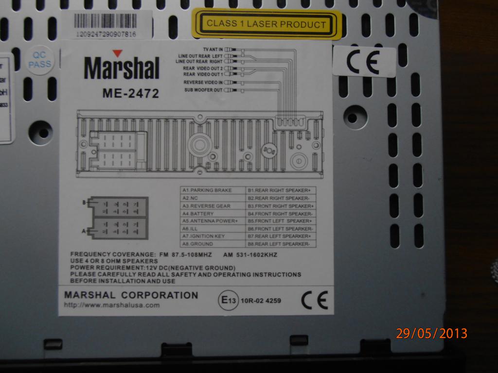 dzien dobry.wiem ze wiele juz bylo na ten temat ale akurat nie do mojego radia a nie jestem elektronikiem i nie znam angieskiego.kupilem radio Marschal ME-2472 DVD/VCD/CD/MP3.podlaczylem kostke orginalnie ale nie pokazuje nic na wyswietlaczu i dziala tylko przy wlaczonym kluczyku.nie chce cos spalic moze mi ktos pomoze.wg kolejnosci jak w alfie kostka ma wejscia NOWE RADIO 1-Parking Brake 2-NC 3-REVERSE GEAR 4-Bateria 5 anrena power 6-ILL 7-IGNITION KEY 8-Ground .Kostka w mojej alfie ma wg.kolorow kabli odpowiednio 1-cerwono czarny 2-czarny 3-szary 4-pusty 5-bialy 6-w org.radiu jest wtyk ale nie podlaczony w kostce 7-rozowo czarny 8-w radiu pusty w kostce niebiesko zielony.wiem ze nie bede mial sterowania przy kierownicy ale pozniej pomysle o przejsciowce jak skojarze jakiej firmy jest ten Marshal.dziekuje za pomoc bez wzgledu efektu!