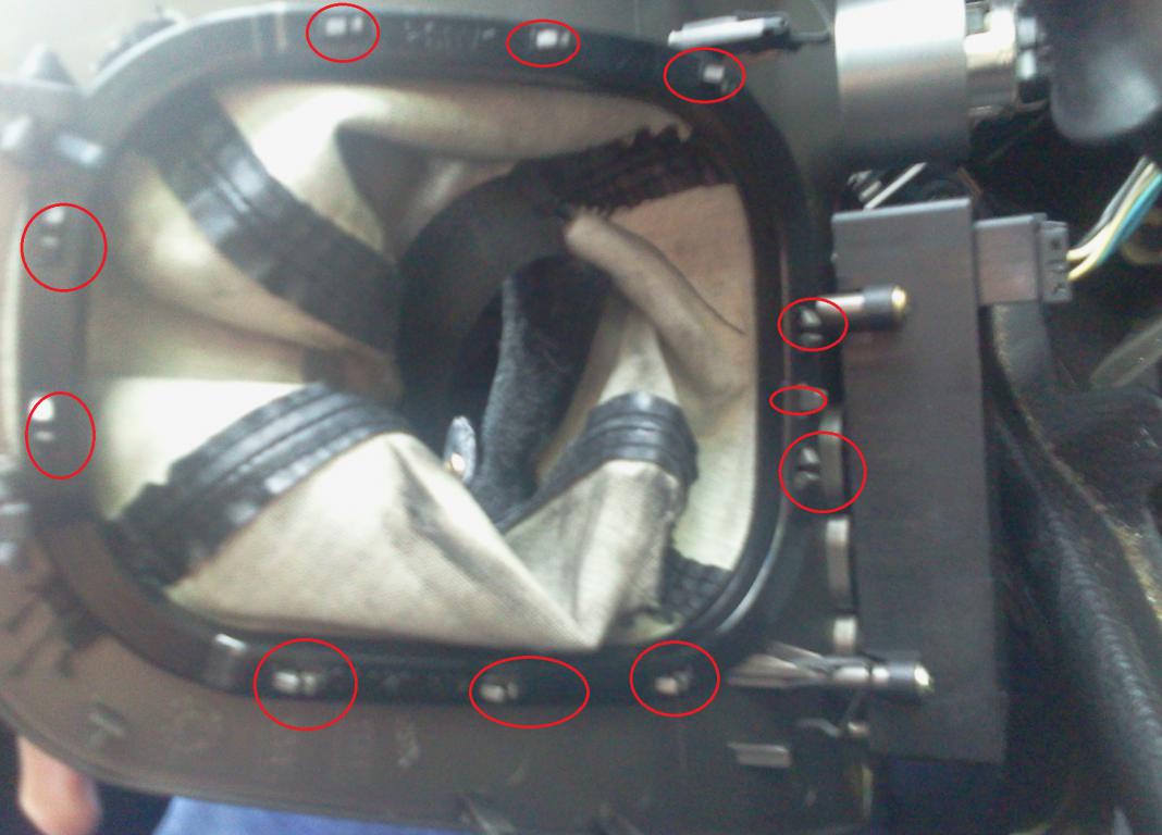 Musisz wyjąć cały plastik ten z przełącznikami i zapalniczką. Mieszek jest trzymany za pomocą plastikowej ramki, która jest nakładana/wciskana od spodu. Uważaj żebyś nie połamał bolców do jej mocowania.