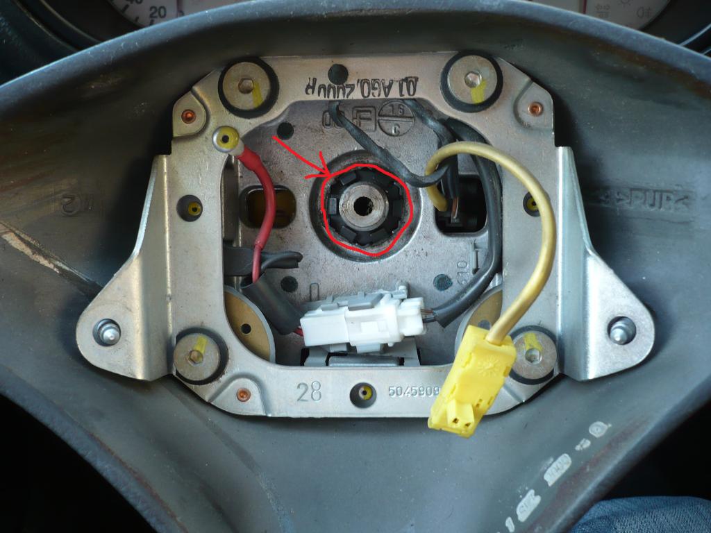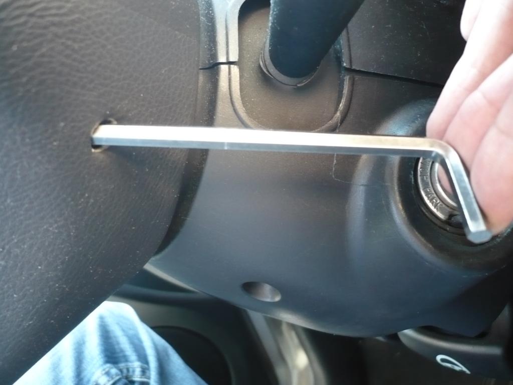 Krok 1. Odkręcamy dwie śrubki trzymające poduszkę powietrzną, znajdują się z tyłu kierownicy (imbus 5)