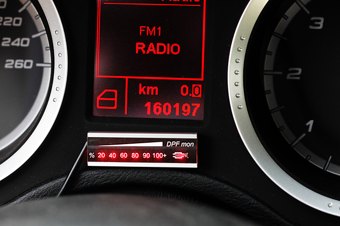 Odczytuje z ECU informacje o poziomie zatkania DPF i pokazuje to na linijce diodowej aktualny stan.
