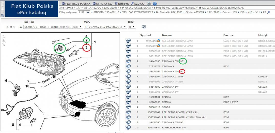 Pełny optymizmu idę do Alfy, a tu "kuku". Mijania (zewnętrzne) to H7, a nie jak na eper H1