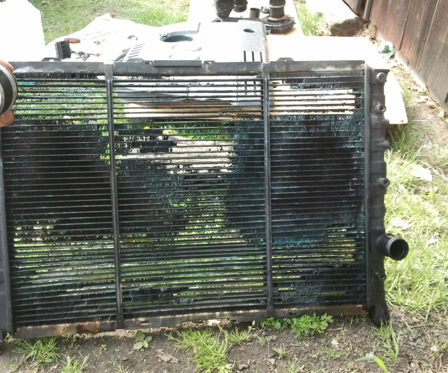 Więc pany drogie . Pierwsza przelotka autostradą i miastem w korku . Wrażenia pozytywne - autobaną przy prędkościach 110-140 temperatura w granicach 85C . W korku raz mi się załączył wentylator ( 1 bieg) ogólne wrażenia ( z chinczyka za 168pln z allegro:) ) dobre . Teraz zobaczymy jak to się będzie kupy trzymać . Dla tych którzy boją się brać samemu za wymiane powiem tylko ,że twierdzenia jakoby to było tak trudne i czasochłonne można między bajki włożyć . Ja miałem oryginalną chłodnice od nowości ( co widać na fotkach ) i zajeło mi to z piwkiem w ręku może 2 godzinki - na gotowo ( żadnych problemów z odkręcaniem - jedynie do 2 dolnych srubek pod osłoną silnika trudniej się dostać ). Ale przyznam ,że tak zajechanej chłodnicy jeszcze nie widziałem Załącznik 101341Załącznik 101342Załącznik 101343 . W razie pytań służę pomocą :)