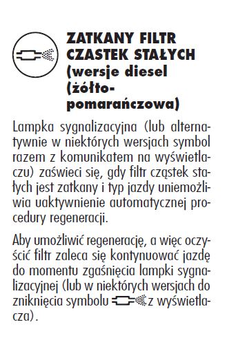 Miałem taką kontrolkę jak miałem zapchany filtr w 90% auto z ledwością odpaliło , migiem na trasę wypalić i od tamtej pory komunikat nie wrócił.