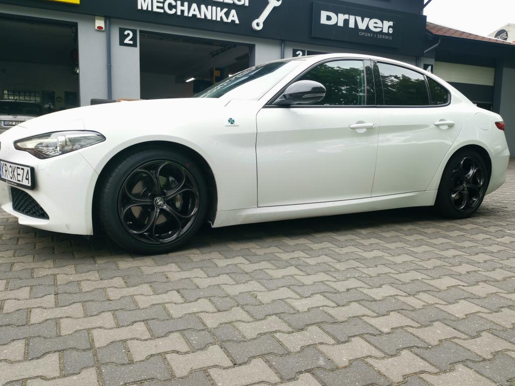 W mojej Giulii mam turbiny, ale jasne, w rozmiarze 19 sali i zastanawiam się nad zmianą na grafitowe 18tki, przy czym mam opony o profilu 225/35 i 255/40. Zastanawiam się, czy przy okazji zmiany felg z 19 na 18, nie zwiększyć profilu opon o 5 z przodu i z tylu, dla zwiększenia komfortu i zmniejszenia utraty prześwitu.