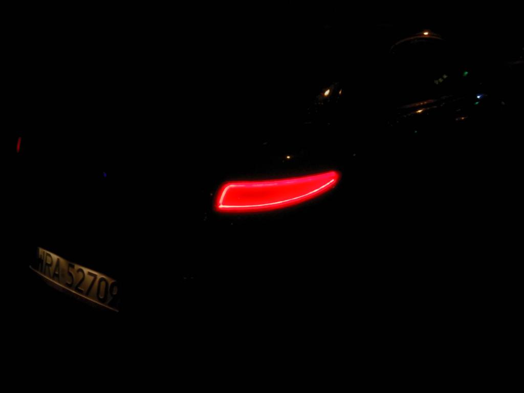 Neonowa dolna linia lamp wygląda bosko w połączeniu z tyłem GT :) Ale czy kierunki nie świecą trochę zbyt słabo? Być może to kwestia kamery, ale wolałbym światło zdecydowanie bardziej jaskrawe, mocniejsze i rzucające się w oczy. W końcu nie jesteśmy kierowcami BMW, którzy kierunki dostają w opcji :P