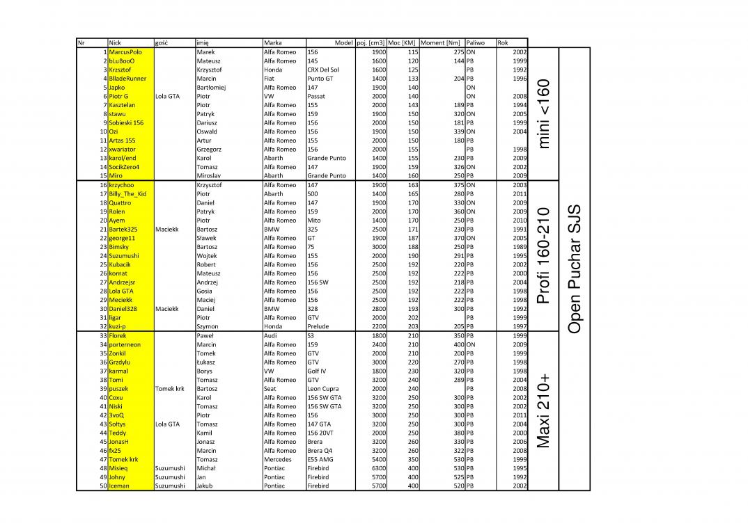 Dokładnie z takimi numerami startowymi będziemy sie meldować. Chodzi o to żeby wolniejsze samochody jechały koło siebie, żeby nie było sytuacjia że się dwa auta spotkają na torze. Auto będzie startować średnio co minutę a czas przejazdu całej pętli będzie dłuższy wiec teoretycznie 1000 konny bugatti V może dojść punto 2 w gazie :)