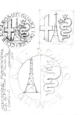 Jakiś czas temu zwróciłem się do Pana Zbigniewa Maurera (niezręcznie jest mi pisać kim jest, bo miałem jak dotąd wrażenie, że dla Alfisti to rzecz oczywista, jednak... jest gliwiczaninem z pochodzenia, jednym z wybitniejszych stylistów Centro Stile Alfa Romeo - m.in. projekt 156, w którym odegrał znaczącą rolę, więcej - bez obrazy - łatwo znaleźć w necie), z prośbą o zrobienie jakiegoś szkicu loga dla alfistów - alfaholików z Gliwic i okolic.