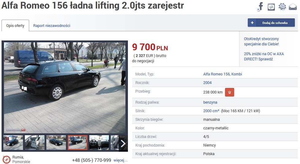 Byłem w Płocku żytnia 26 to adres komisu, szczerze odradzam tą 166 bo to przekręt ostry. Wersja po liftcie srebrna 166 http://allegro.pl/alfa-romeo-166-2-5...117370418.html