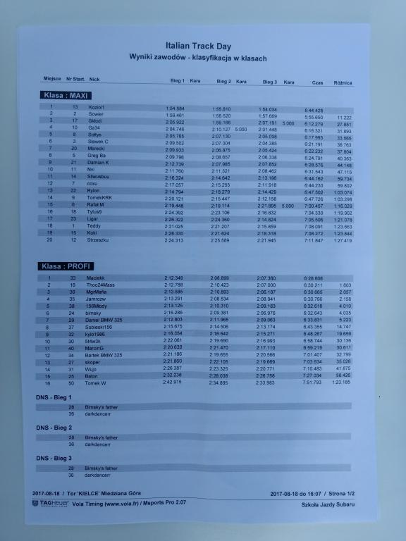 Tak czy tak mój trzeci bieg/przejazd był 0,5 sek wolniejszy niż najszybszy ryloona, a to jak wspomniałem jest dla mnie już jakąś wykładnią. Jest to też ostatecznym dowodem, że z mocą w moim wozie nie jest źle, tak jak myślałem na początku i że uległem - jak pewnie większość napaleńców - magii literek V6 TB i musiałem się twardo zderzyć z rzeczywistością... Ale to już inna historia :)