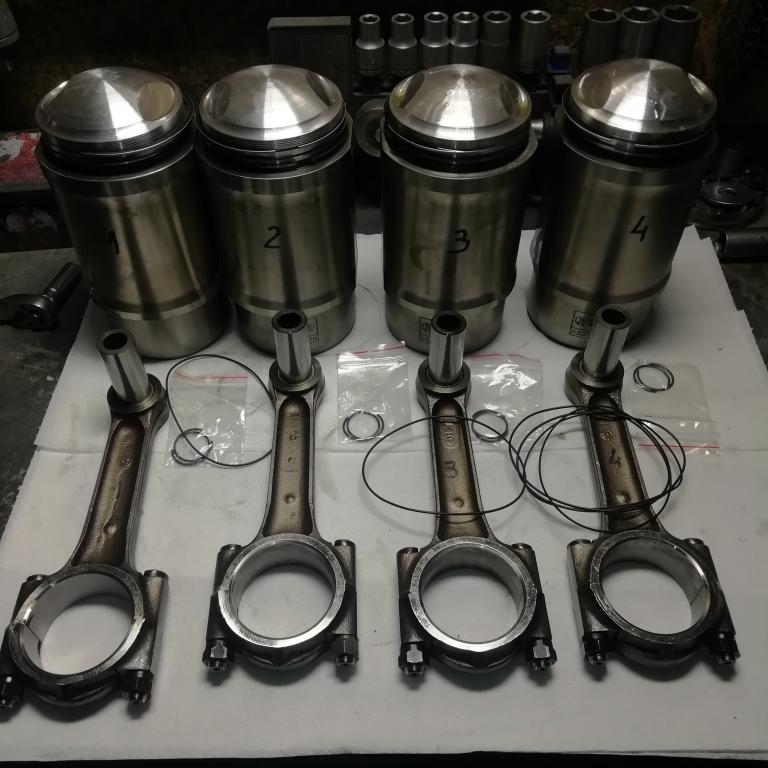 Wszystkie bebechy takie jak tuleje cylindra, tłoki, pierścienie, panewki, tulejki korbowodów itp nowe prosto z GB niestety. No i nowe szpilki oczywiście :)