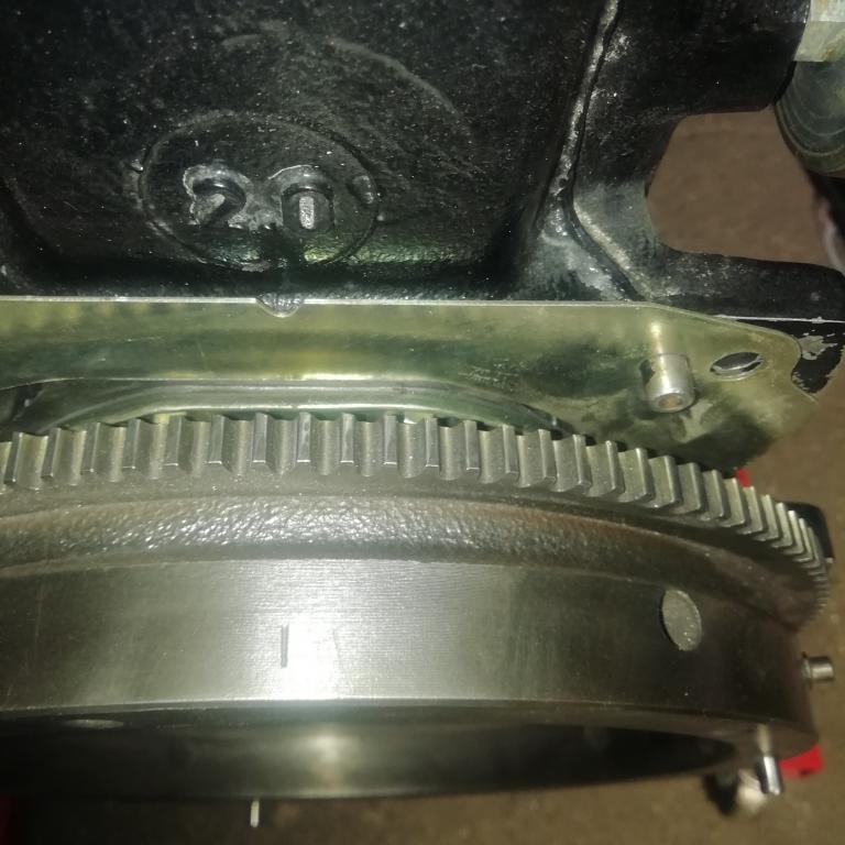 Tłoki i korby na miejscu, dla łatwiejszego kręcenia wałem zamontowałem nawet koło zamachowe - zgodnie z instrukcją serwisową znacznikiem GMP do góry.